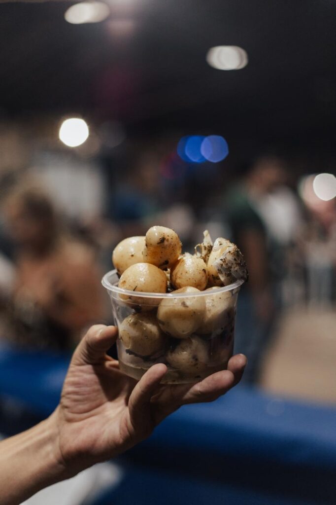Protagonista do evento, a batata aparece em diferentes versões e preparos, explorando texturas e combinações que agradam a todos os paladares. O cardápio inclui ainda pastel, lanche de pernil, linguiça artesanal, espetinhos, doces caseiros, churros e os tradicionais sorvetes da Sorveteria Paris. Para acompanhar, cerveja gelada, chopp artesanal e drinks preparados na hora completam a experiência. O cenário à beira do rio, com mesas compartilhadas e música ao vivo, reforça o clima típico das festas do interior.